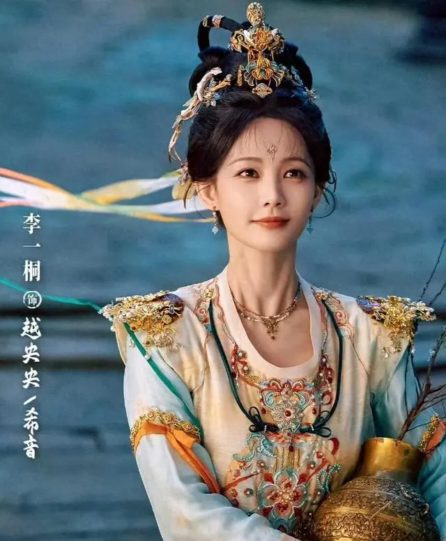 在视觉呈现上,剧组更是下足了功夫,主打的就是敦煌美学。 李一桐的造型完美复刻了敦煌壁画的神韵,飘带上的十二乐灵刺绣会随着光线流转,三米长的金丝璎珞披帛仙气十足,额间那抹名为“天火坠凡”的朱砂图腾是点睛之笔。 据悉,剧组还邀请了敦煌研究院的顾问参与造型设计,将飞天元素与改良的唐制襦裙相结合。 连音律释放时的流光特效,都力求贴合古乐的意境。